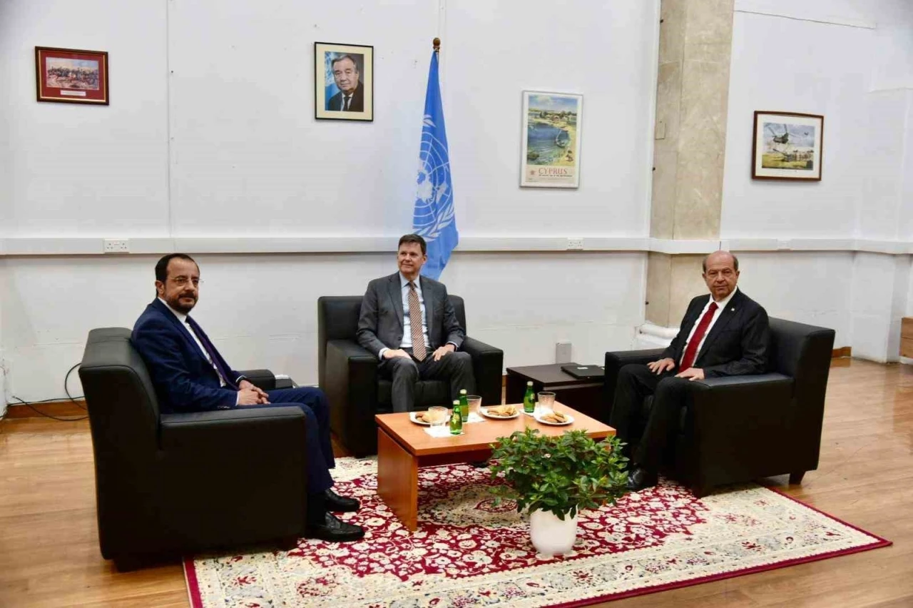 Kuzey Kıbrıs Türk Cumhuriyeti (KKTC) Cumhurbaşkanı Ersin Tatar ile Rum Yönetimi Başkanı Nikos Hristodulidis Lefkoşa’da bir araya geldi. Lefkoşa ara bölgedeki Ledra Palace Hotel’de Birleşmiş Milletler Genel Sekreteri’nin Kıbrıs Özel Temsilcisi ve Kıbrıs’taki Birleşmiş Milletler Barış Gücü (UNFICYP) Misyon Şefi Colin Stewart ev sahipliğinde gerçekleştirilen görüşme yaklaşık 1,5 saat sürdü.
