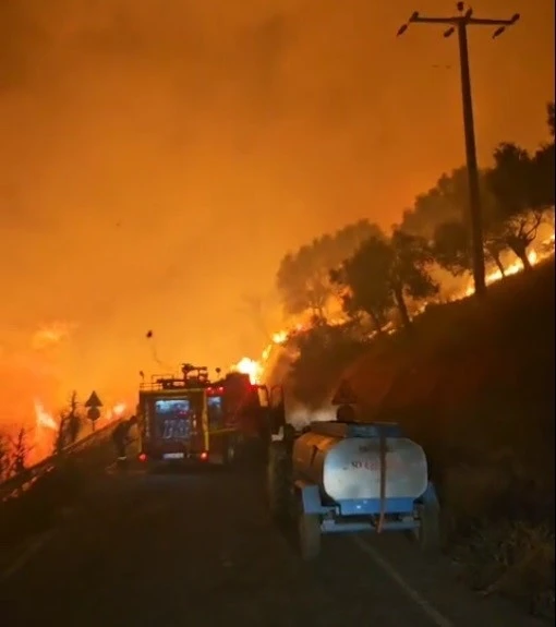 Kocasinan Belediyesi Fen İşleri Müdürlüğü ve Afet İşleri Müdürlüğü bünyesinde görev yapan Süleyman Uras ve Ali Mehmet Beran, arazöz şoförleri olarak İzmir’deki yangın söndürme çalışmalarında aktif rol alıyor. Zorlu arazi şartlarında, yoğun duman ve yüksek sıcaklık altında görev yapan personeller, zaman zaman alevlerin arasında kalarak ölümle burun buruna geliyor. Yangının en yoğun olduğu noktalarda görev alan Uras ve Beran, yangınla mücadele süresince büyük bir özveri ve cesaret örneği sergiliyor. Yangını söndürmek için var güçleriyle mücadele eden ekibe teşekkür eden Başkan Çolakbayrakdar, ülkemizin birçok yerinde çıkan orman yangınları nedeniyle geçmiş olsun mesajı ileterek; "Yangınlar yüreklerimizi yaktı ve ilk günden beri ciğerimiz yanıyor. Allah kolaylıklar versin. İnşallah en kısa sürede içinde bulunduğumuz bu ortamdan kurtuluruz. Kocasinan Belediyesi olarak imkânlarımızı seferber edip, arazöz aracımız ve personelimizle birlikte yangın söndürme çalışmalarına destek oluyoruz. İnşallah bu zor günleri hep birlikte aşacağız. Orman yangınlarından etkilenen vatandaşlarımıza geçmiş olsun dileklerimi iletir, yangınlarla mücadele eden tüm ekiplere, gönüllülerimize ve özveriyle çalışan belediye personelime teşekkür eder, kolaylıklar dilerim" ifadelerine yer verdi.
