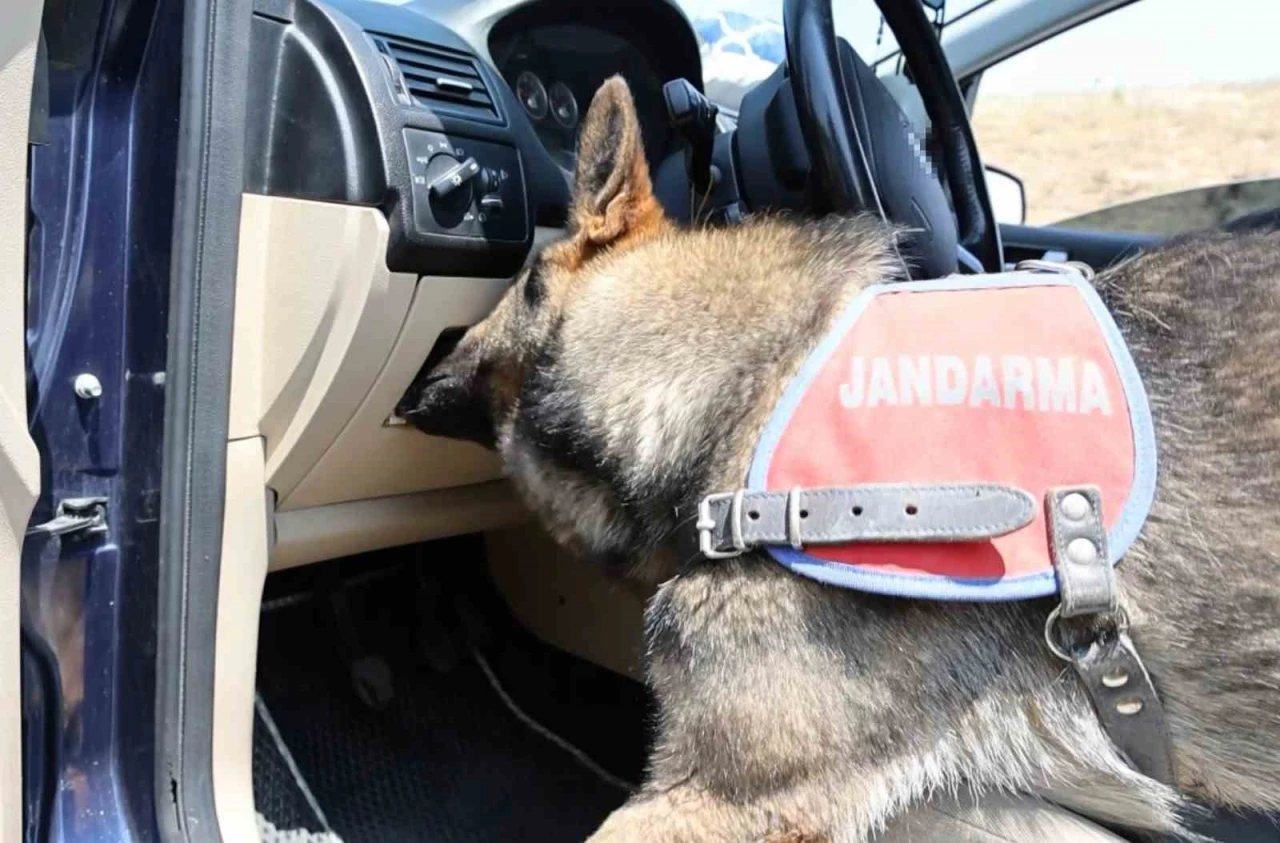 Aksaray’da jandarmanın şüphe üzerine durdurduğu otomobilde arama yapan narkotik köpeği, koklayarak bulduğu uyuşturucuyu patisiyle çıkarttı.