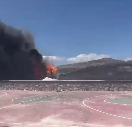 Adıyaman’da, inşaat alanında bulunan bir konteyner alev alarak cayır cayır yandı.