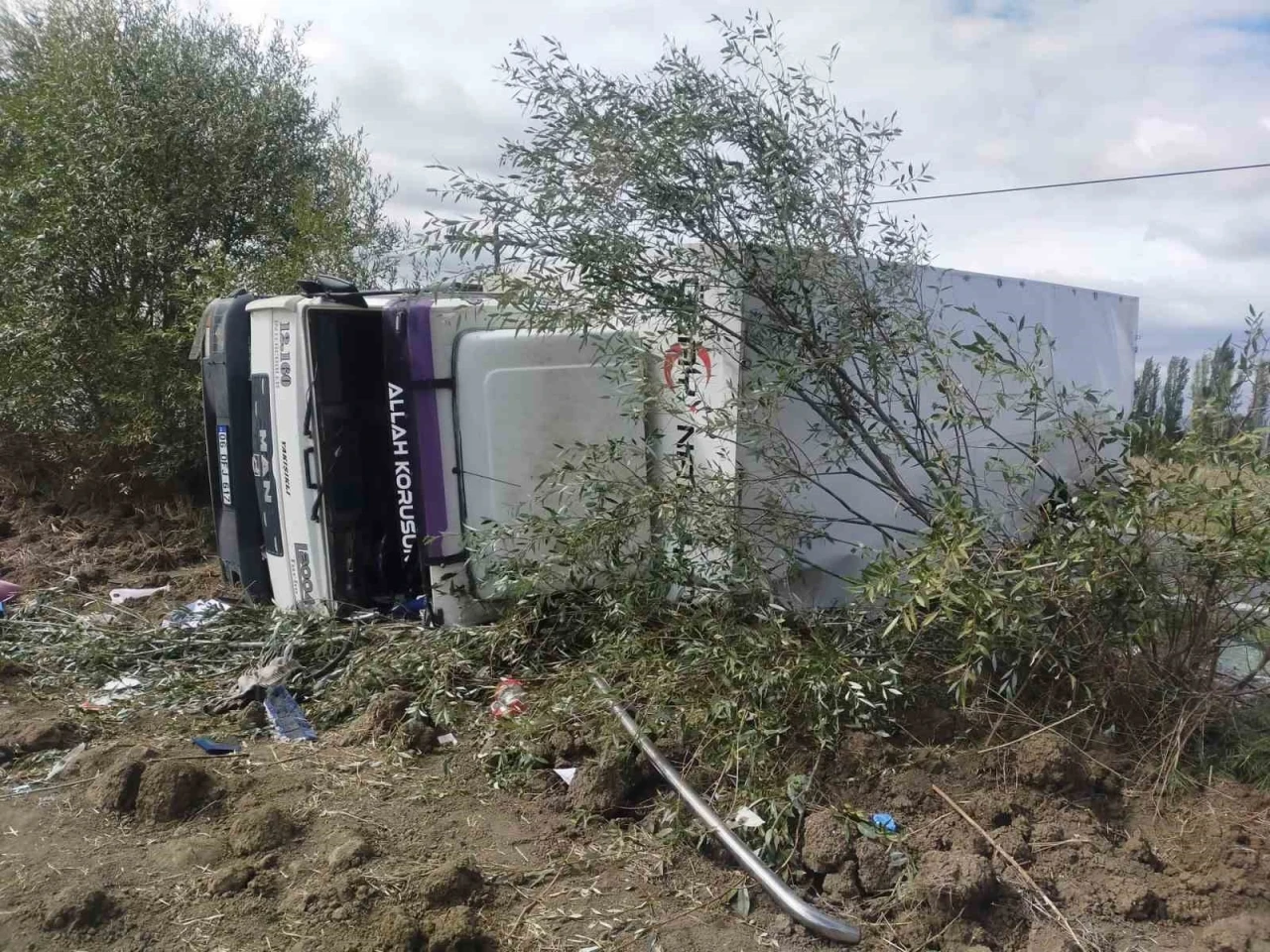 Çorum’un Alaca ilçesinde kontrolden çıkan kamyonun devrilmesi sonucu meydana gelen trafik kazasında 3 kişi yaralandı.
