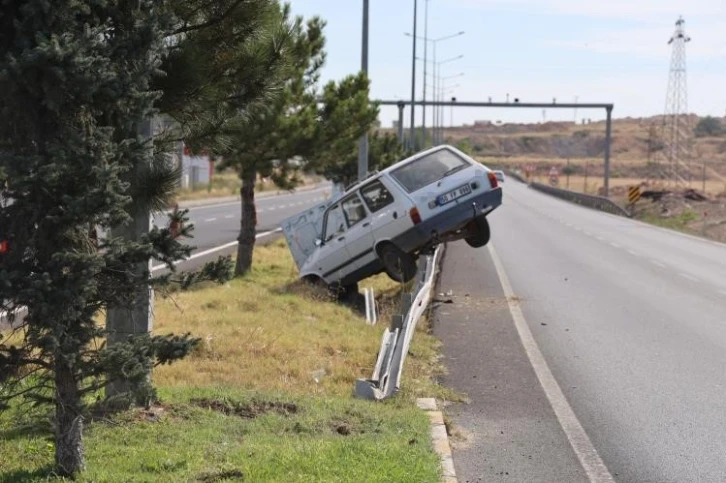 Nevşehir’de kontrolden çıkan otomobil önce orta refüje, sonrada bariyer demirlerine çıkarak durabildi. Kazada 1 kişi yaralandı.