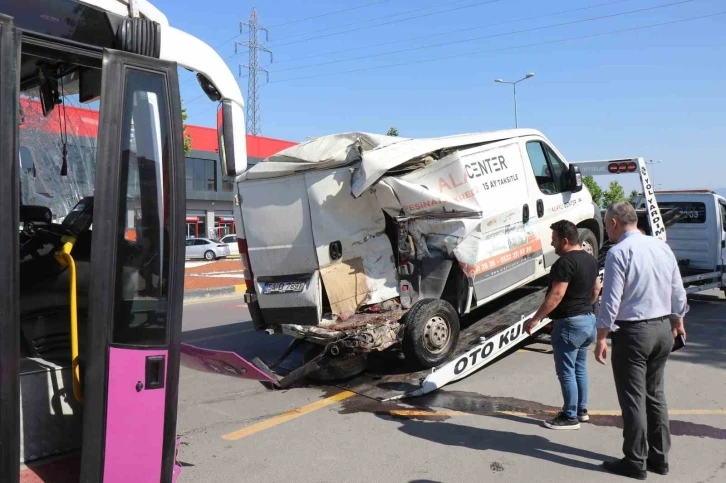 Sakarya’nın Erenler ilçesinde freninin boşaldığı öne sürülen özel halk otobüsü, park halindeki otomobile çarptıktan sonra seyir halindeki minibüse ok gibi saplandı. Kazada otobüs şoförü yaralandı.