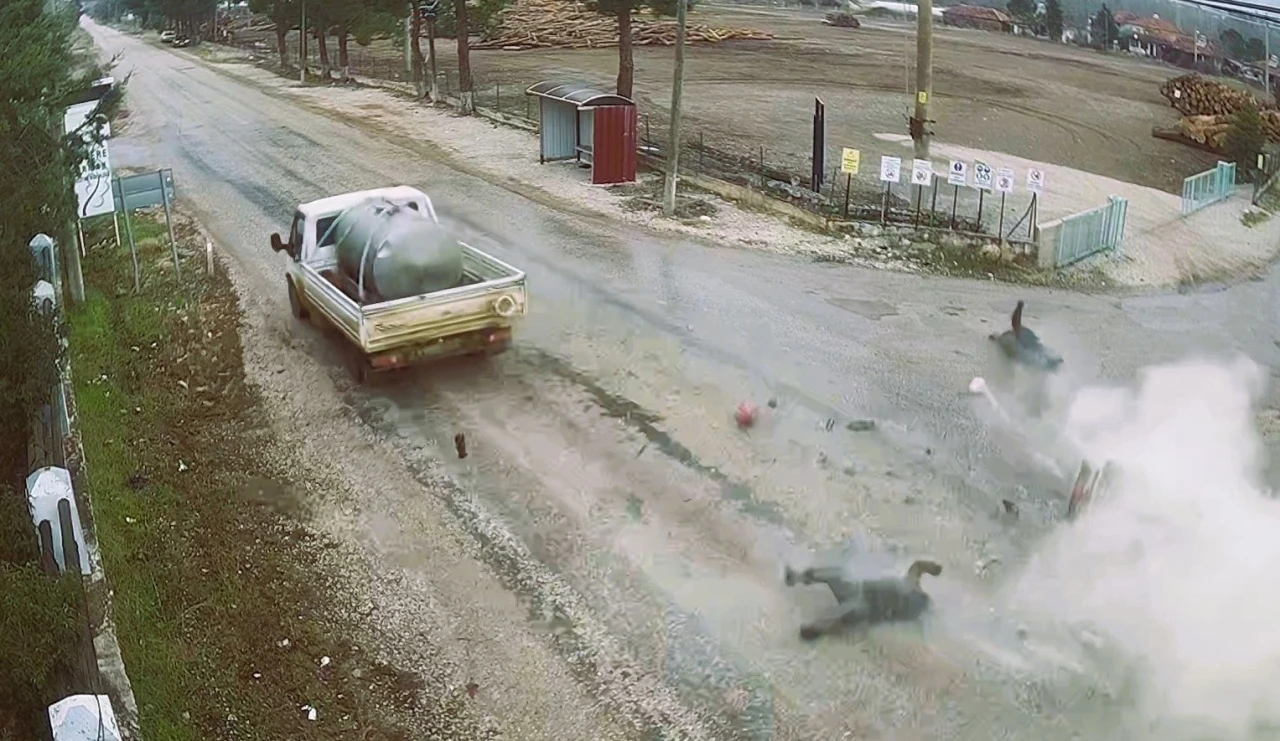Çiftin hayatını kaybettiği kaza, bölgedeki bir iş yerinin güvenlik kameralarına yansıdı. Görüntülerde, araçların çarpışması sonucu çiftin yola savrulması, kamyonet sürücüsünün yaralıların durumunu kontrol edip başlarından hiç ayrılmadığı anlar yer aldı.