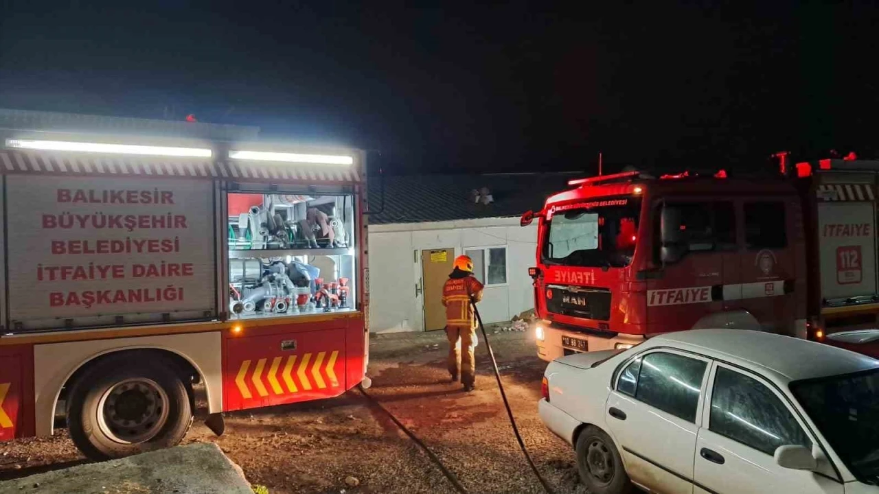 Balıkesir’in Altıeylül ilçesinde yapımı devam eden konut inşaatında çalışan işçilerin kaldığı konteynerde gece yarısı çıkan yangını itfaiye ekipleri söndürüldü.