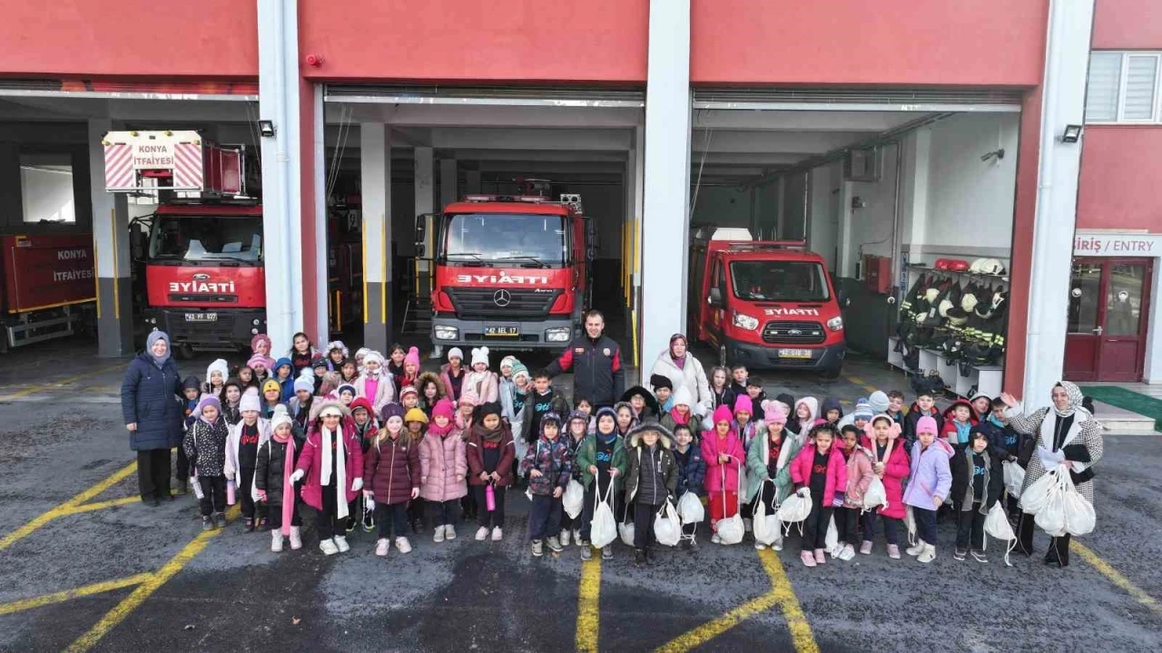 Konya Büyükşehir Belediyesi’nin şehir merkezindeki tüm ilkokul 1. sınıf öğrencileri için düzenlediği teorik ve uygulamalı itfaiye eğitimleri devam ediyor.