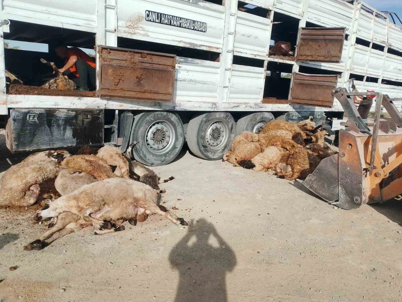 Konya’da Ankara-Niğde Otoyolu Kulu gişeleri çıkışında küçükbaş hayvan yüklü bir tırın devrilmesi sonucu 147 hayvan telef oldu.
