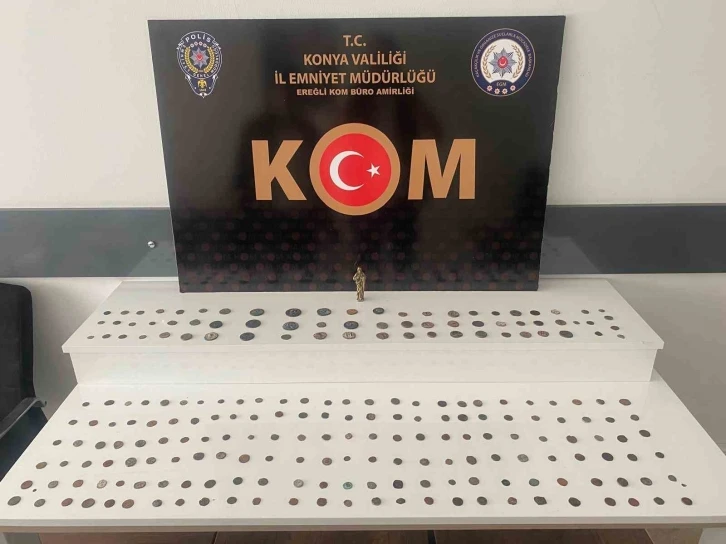 KOM Şube Müdürlüğü Ereğli KOM Büro Amirliği görevlilerince tarihi eser kaçakçılarına yönelik yapılan çalışmalar kapsamında ise 1 ikamette arama yapıldı. Yapılan aramada 224 adet sikke ve 1 adet tarihi eser niteliğinde obje ele geçirilirken, 2 şüpheli gözaltına alındı.