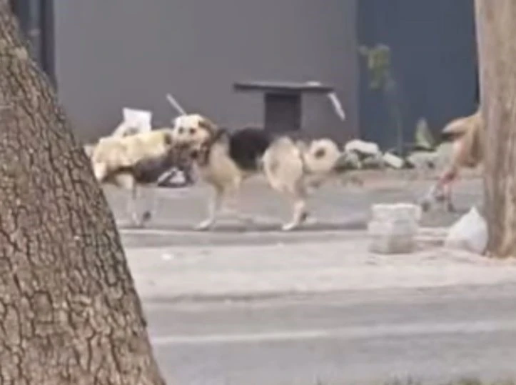Konya’da sahipsiz köpeklerin bir kediye saldırma anı çevreden geçen vatandaşın cep telefonu kamerasına yansıdı.