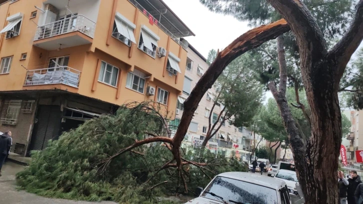 Aydın’ın Nazilli ilçesinde sağanak yağış ve beraberindeki kuvvetli rüzgar etkili olurken, kopan ağaç dalı seyir halindeki bir otomobilin üzerine düştü. Meteoroloji Genel Müdürlüğü’nün uyarıları sonrasında şiddetli yağmur ve fırtına etkisini göstermeye başladı. Aydın genelinde yer yer etkili olan sağanak yağış hayatı olumsuz etkiledi. Nazilli’de de etkisini gösteren sağanak yağış ve kuvvetli rüzgar vatandaşlara zor anlar yaşattı. Kuvvetli rüzgar dolayısıyla cadde üzerinde kopan ağacın dalı büyük bir gürültü ile seyir halindeki otomobilin üzerine düştü. Bir anda neye uğradığını şaşıran sürücü aracını durdurarak dışarı çıktı. Camları kırılan ve tavanı ezilen aracın içinden burnu bile kanamadan çıkan sürücü, büyük panik yaşadı. Olayı görenler durumu 112 Acil Çağrı Merkezi’ne bildirdi. İhbar üzerine bölgeye itfaiye ve polis ekipleri sevk edildi. Kısa sürede olay yerine gelen polis ekipleri olay nedeniyle trafiğe kapanan yolda önlem alırken, otomobili ağacın altından çıkarmak için çalışma başlatan Aydın Büyükşehir Belediyesi İtfaiye Daire Başkanlığı ekipleri, ağacı testere ile kesti. Ekiplerin çalışmaları sonucunda yol tekrar trafiğe açıldı.