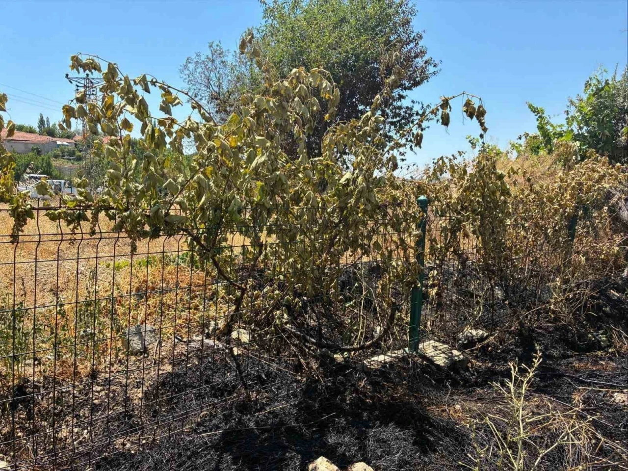 Yozgat’ta elektrik direğinden kopan kablo ekili alan ve meyve ağaçlarının yanmasına neden oldu.