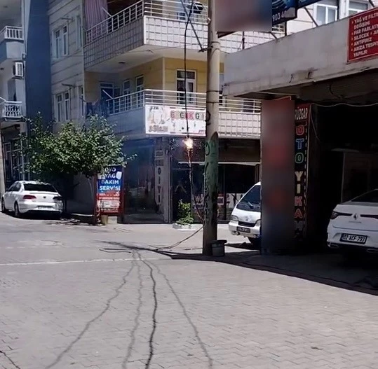 Adıyaman’ın Kahta ilçesinde kopan elektrik hattı paniğe neden oldu.