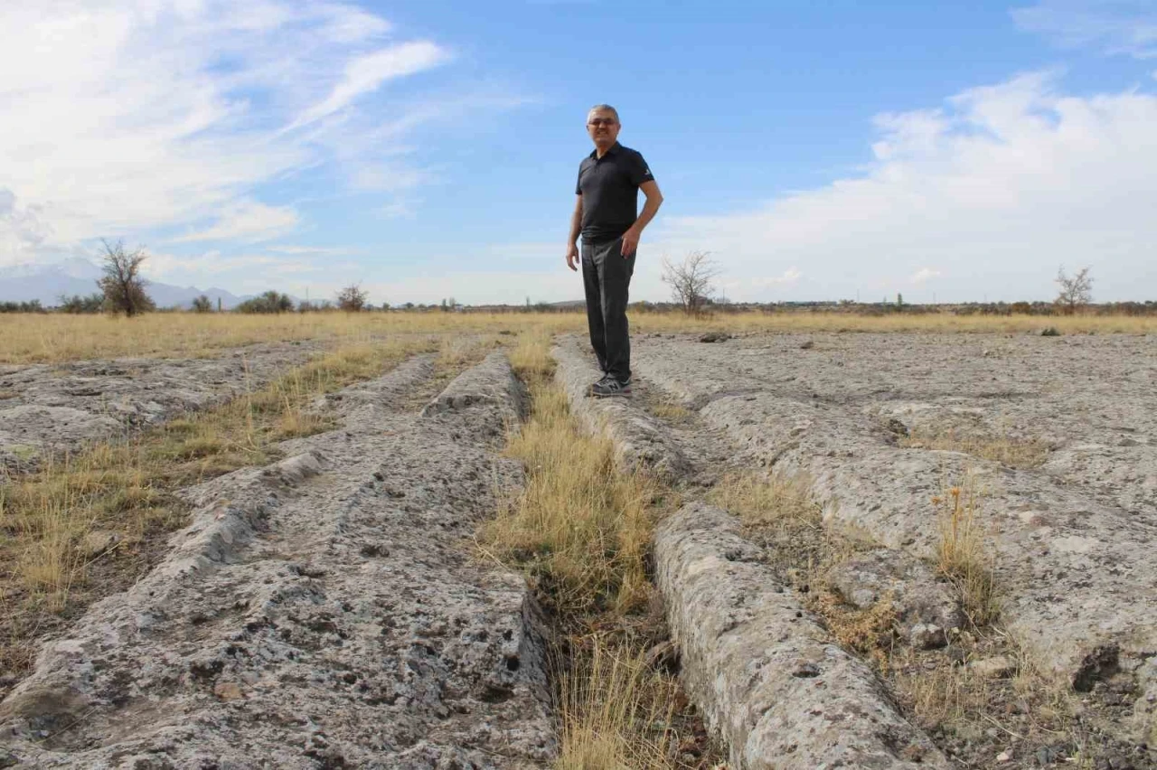 Turan Mahallesi’nde bulunan izlerin kağnı izleri olduğunu düşündüklerini ancak literatürde henüz bununla ilgili bir çalışma yapılmadığını sözlerine ekleyen Prof. Dr. Osman Özsoy, "Şu anda, Turan’ın güneybatı istikametinde, mahalle merkezine yaklaşık 2 kilometre mesafede bir yerdesiniz. Burada çeşitli izler var. İzler belirgin ve derinliklere sahip. İzler arasındaki mesafeler genellikle çok bilindik ve rastgele olmayan mesafeler. Biz buranın savaşta, ticarette ya da barışta kullanılan bir atlı araba veya öküzlü araba yolu olduğunu tahmin ediyoruz. Engir Gölü çevresinde, Kültepe-İldem aksında da böyle bir alanın olduğunu biliyoruz. Burası, güvenli olduğu için tercih edilmiş. Altyapısı, araçların yüklü veya yüksüz şekilde geçmelerine müsaade ettiği için tercih edilmiş. Yıllar içerisinde çok fazla kullanılmasından dolayı, yüklü ya da yüksüz, buradan onlarca ve binlerce kağnı geçmekte. Kağnılar; bu yolları kaya olsa dahi zaman içerisinde aşındırmış. Tekerleklerin neredeyse yarı çapı yüksekliğinde dikey olarak gördüğümüz uzunluklarda çukurlar oluşturmuşlar. İki tekerleğin merkezine doğru olan uzaklık ile buradaki iki çizgi arasındaki mesafe hemen hemen aynıdır. Bu durum da bu tezi doğrulamaktadır. Bazen 10 ya da 20 tane yol çizgisinin bir arada olduğunu görebiliyoruz. Aşınmayla beraber, farklı yollar tercih edilmiş. Çok yoğun olduğu durumlarda karşı karşıya gelmemek ve yükün gecikmemesi için böyle yollar tercih edilmiştir. Bu değerin burada varlığı, Koramaz Vadisi ve Turan Mahallesi’ne ekstra bir zenginlik katmaktadır. Bölgedeki sıkışık Ağırnas ve Koramaz Vadisi aksındaki ziyaretlere ek olarak, köylülerimizin çok iyi bildiği bu yerleri de ziyarete kazandırmak, görmelerini sağlamak ve korumak çok önemli bir unsur olarak karşımıza çıkmaktadır. Bazı noktalarda kesintiler görüyoruz. Yükseltiler arasında, peynir kesercesine dümdüz kesildiğini görüyoruz. Değirmen taşı niteliğinde yuvarlak geometriye sahip taşlar, yerden 30 santimetre yükseklikte olduğu için kesilmiş ve taşınmış olduğu yerden uzaklaştırılmış. Boydan boya takip ederseniz, bazı izlerin çok belirgin olduğunu görürsünüz. Toynak ya da nal izi olarak düşünülebilir. Aynı yere basan taşıyıcı hayvanların, diğer kağnı tekerleklerinin yol yapması gibi, onlar da burada kendi izlerini bırakmışlar. Bu durumla ilgili literatürde hiçbir çalışma yok. Koramaz Vadisi’ni ya da şehri düşündüğümüzde, daha detaylı çalışmalar yapılacağı umudunu taşıyoruz" ifadelerini kullandı.