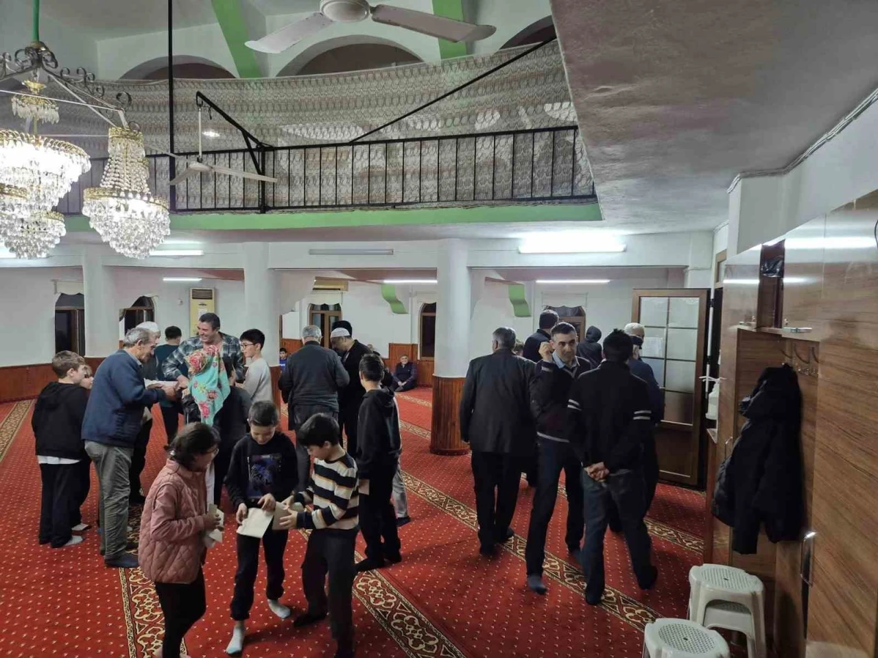 Muğla’nın Köyceğiz ilçesi Merkez Hacılar Yunus Emre Camii’nde Ramazan ayının başından bu yana teravih namazlarına devam eden çocuklara bayram harçlığı dağıtıldı. İlçe Müftüsü Ahmet Karagöz, din görevlisi Ramazan Erduran ve cami cemaatinin başlattığı "Teravihlere gel bayram harçlığını al" kampanyası çerçevesinde Ramazan ayı boyunca teravihlere devam eden yaklaşık 54 çocuğa bayram harçlıkları teravih namazından sonra dağıtıldı. Çocukların sevinç ve mutluluklarının gözlerinden okunduğu harçlık dağıtımında konuşan Müftü Karagöz; "Ramazan ayının başında, geleceğimizin teminatı çocuklarımıza söz vermiştik. Bugün cemaatimizle birlikte sözümüzü yerine getirmenin, yavrularımızın Ramazan Bayramı’na sevinçle girmelerini sağlamanın mutluluğunu yaşıyoruz. Yaklaşık 54 yavrumuza zarflar içerisinde çam sakızı çoban armağanı bayram harçlıklarını takdim ettik. Şimdiden başta çocuklarımız olmak üzere tüm kardeşlerime mutlu huzurlu bayramlar diliyorum. Bu güzelliği ve sevinci yaşatan cemaatimize katkılarından dolayı da ayrıca teşekkür ediyorum" dedi. Bayram harçlıklarından dolayı mutlu olduklarını ifade eden çocuklar, büyüklerine ve hocalarına teşekkür etti.