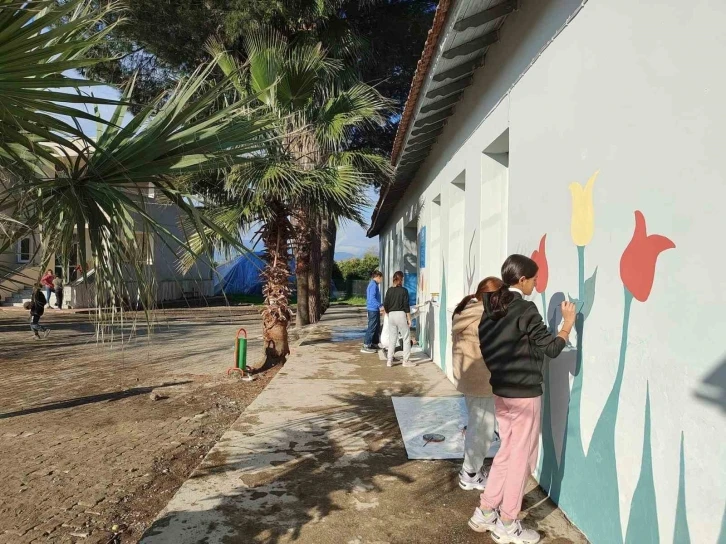 Muğla’nın Köyceğiz Ortaokulu’nun duvarları resimlerle donatılarak, güzelleştirildi. Köyceğiz Mahallesi’nde bulunan ortaokul farklı etkinliklerle adından söz ettirmeye devam ediyor. Köyceğiz Ortaokulu Görsel Sanatlar Öğretmeni Rana Göy önce resimlerin çizimini gerçekleştirdi, daha sonra fırçayı boyayı alarak öğrencilerle birlikte okul yönetiminin ve öğretmenlerin desteği ile okul duvarlarını rengârenk hale getirdi. Öğrenciler okul duvarlarının resimle donatılmasını sevinçle karşıladı. Köyceğiz Ortaokulu Müdürlüğü tarafından yapılan açıklamada; “Bizler öğretmenleri olarak en mutlu olduğumuz yeri öğrenciler için vatan haline getirmeye devam edeceğiz. Bu amaçla başladığımız yolculuğumuzda okul duvarlarımızı güzelleştirme çalışmalarımız tamamlandı. Bu çalışmada hiç yorulmadan elinden gelenin fazlasını da yaparak bize destek olan Görsel Sanatlar Öğretmenimiz Rana Göy Hanıma sonsuz teşekkürler” ifadeleri kullanıldı.