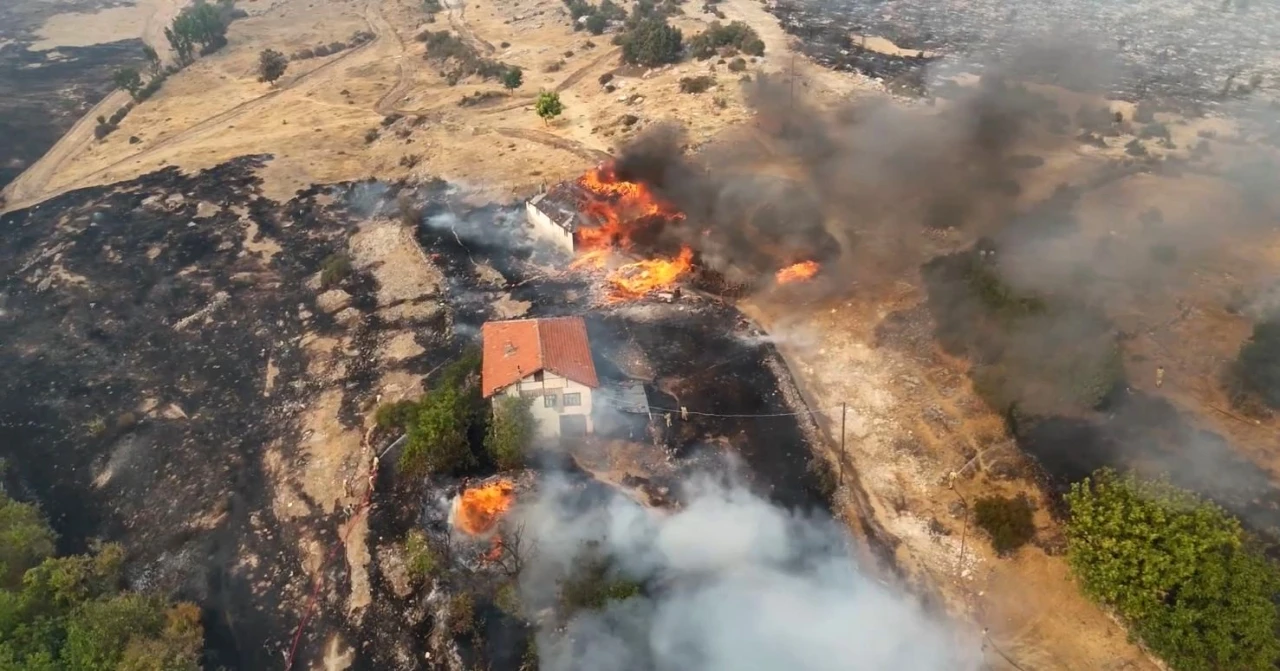 Kastamonu’nun Araç ilçesinde ormanlık alanda çıkan yangının sıçradığı köy havadan görüntülendi.