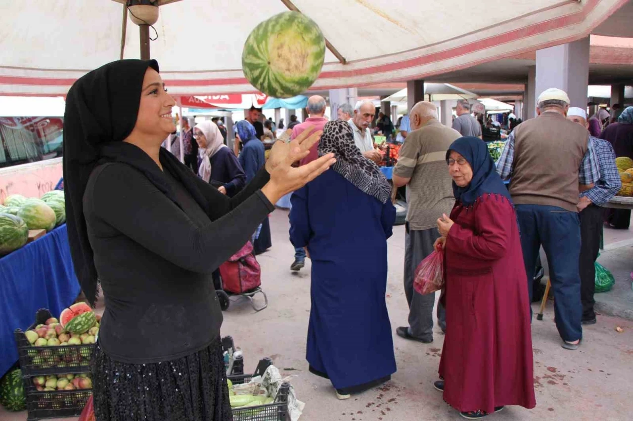Amasya’da 24 yaşındaki Esra İnan, ailesiyle birlikte tarlada yetiştirdiği karpuzları pazarda satarak alın teriyle geçimini sağlarken, güler yüzü ve sempatik tavırlarıyla müşterilerinin sevgisini kazanıyor.