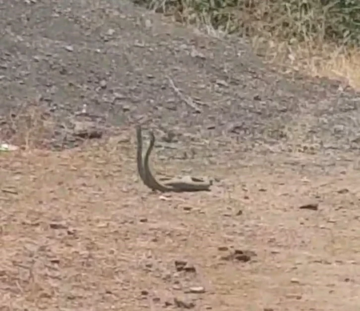 Hakkari’nin Derecik ilçesinde yol ortasında yılanların çiftleşme dansı, vatandaş tarafından cep telefonu kamerayla kaydedildi.