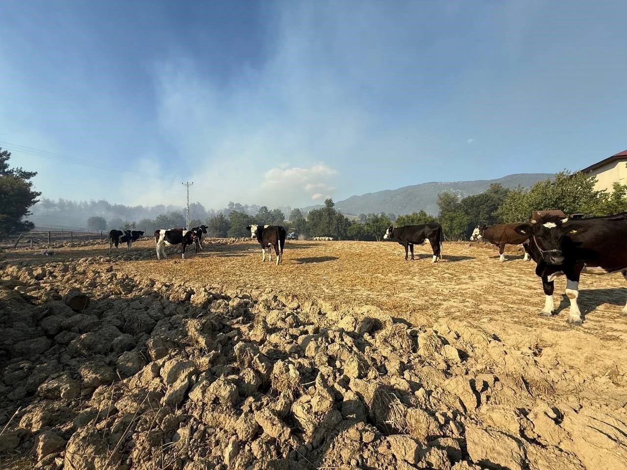 Yangının bahçelere sıçramasıyla bazı evlerin çevresi de alevlerin etkisi altında kaldı. Çiftçilerden Emrah Okutucu, 10 inek ve 50 kuzudan oluşan sürüsünü yangından korumak için ailesiyle birlikte seferber oldu. Traktörüyle arazisini sürerek koruma hattı oluşturan Okutucu’nun ailesi ise bahçelerindeki samanları ve otları sulayarak yangının evlere yaklaşmasına karşı tedbir aldı.