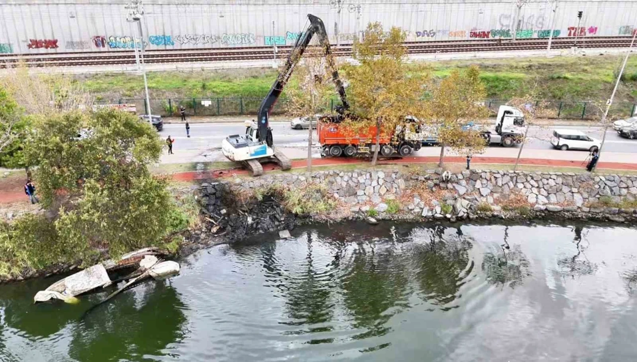 Küçükçekmece Belediyesi ekipleri, tekne mezarlığına dönen Menekşe Deresi’ni temizleme çalışmasına başladı. Çalışmaların yapıldığı alan havadan görüntülendi.