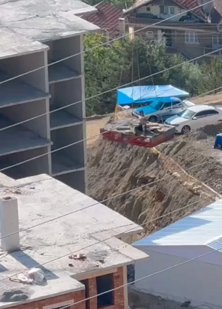 Kastamonu’nun Küre ilçesindeki bir inşaatta, kule vince bağlanmış paletin üzerine çıkan şahıs, metrelerce yüksekte, ölüme davetiye çıkardı. Hareket eden vinç üzerinde elindeki cep telefonu ile binaların görüntüsünü çektiği düşünülen şahıs, görenlerin yüreklerini ağza getirdi. Binaların arasında hareket eden şahıs bir süre sonra yere indi. O anlar kamerada
