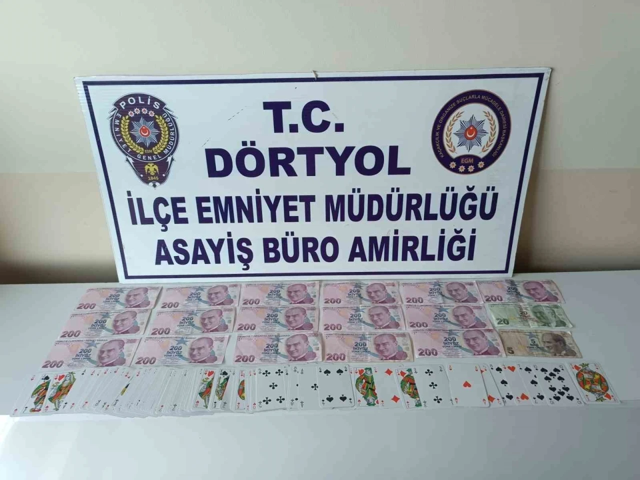 Hatay’da kumar oynayan 8 şahsa 51 bin 400 TL idari para cezası uygulanırken, iş yeri sahibine adli işlem yapıldı. Hatay Emniyet Müdürlüğü görevlilerince kumar oynanması için yer ve imkan sağlama suçlarına yönelik yapılan çalışmalar aralıksız sürüyor. Çalışmalar kapsamında Dörtyol ilçesi Sanayi mahallesinde bir işyerinde yapılan denetimde; mekanda sigara içildiği ve masada bulunan şahısların kumar oynadıkları tespit edildi. Masada toplam 2 bin 800 TL para ile kumar oynamada kullanılan 204 adet iskambil kağıdı olduğu görüldü. Kumar oynayan 8 kişiye toplam 51 bin 400 TL idari para cezası uygulanırken, iş yeri sahibi M.İ.’ye kumar oynanması için yer ve mekan sağlamaktan adli işlem yapıldı..