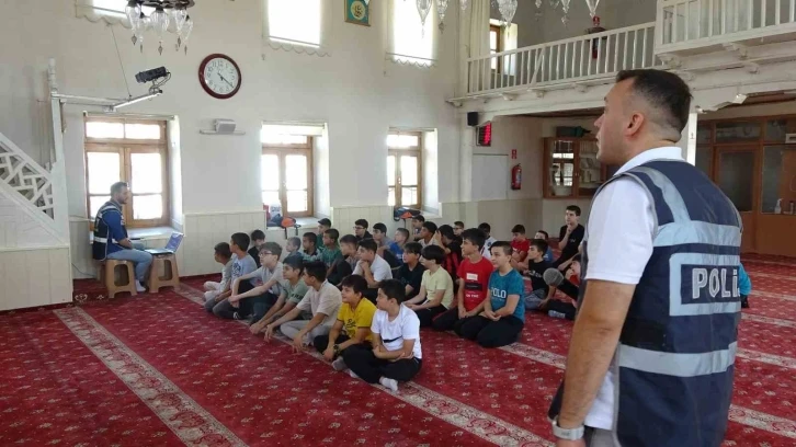 Kütahya’nın Tavşanlı İlçe Emniyet Müdürlüğü görevlileri, Kur’an kursu öğrencilerine akran zorbalığı ve siber suçlar hakkında bilgiler verdi.
