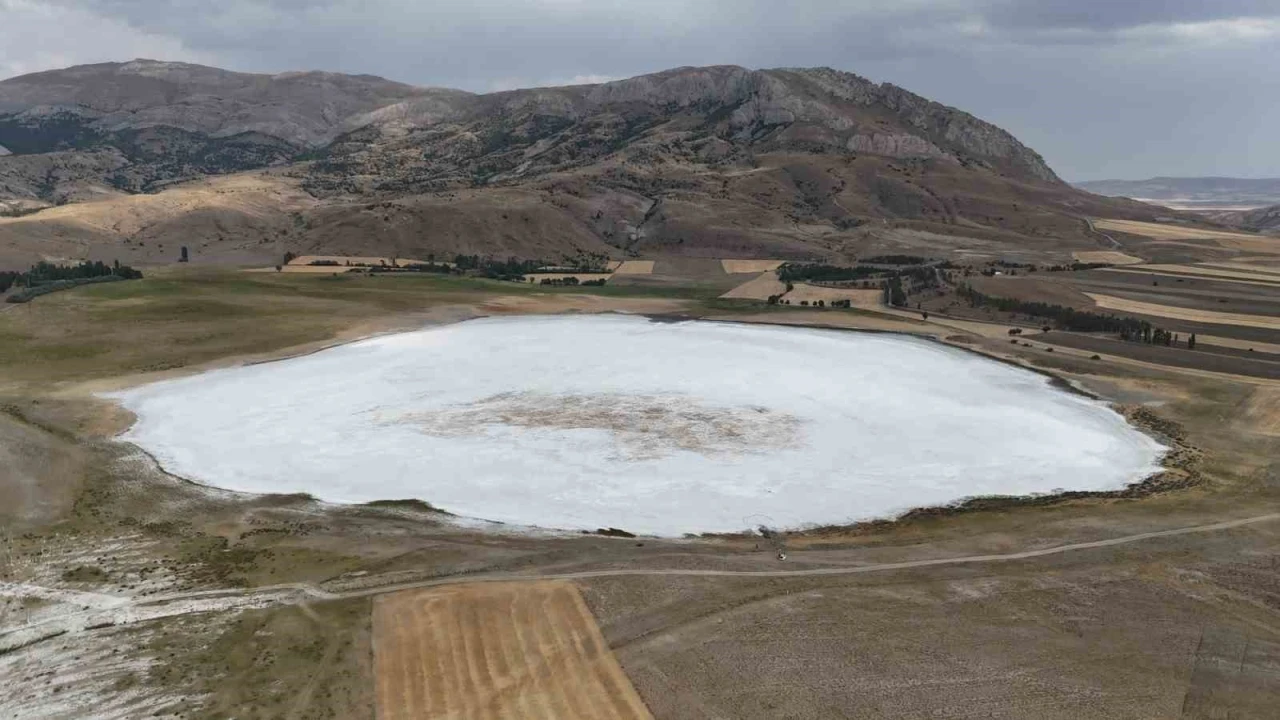 Tüm yurdu etkisi altına alan sıcak hava dalgası sonrası ortaya çıkan kuraklıkla birlikte göller kurumaya başladı. Sivas’ın Ulaş ilçesine 5 kilometre uzaklıkta bulunan Kellah Gölü de, sıcak havalardan nasibini aldı. Her yıl ilkbahar aylarında karların erimesiyle su tutan göl yaz aylarında ise tamamen kuruyor. 2014 yılına kadar bünyesinde bulunan suyu eksiltmeyen, Tecer Dağı’ndan gelen su kaynakları ve yağışlar ile beslenen Kellah Gölü’nden geriye tuz tabakası kaldı. Suyu tuzlu olması sebebiyle tarımsal sulamada kullanılamayan göl, kuruduğunda yerinde beyaz bir tabaka bırakarak adeta beyaz bir çöle dönüştü. Kuruyan Kellah Gölü, dron ile havadan görüntülendi.