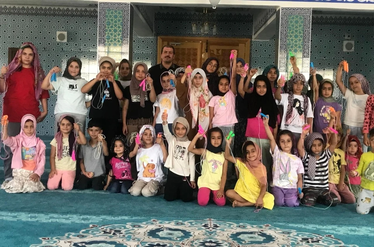 Tercan’da Hacı Ümit Karahan Camisinde Kuran kursunda eğitim gören erkek öğrencilere topaç kız öğrencilere atlama ipi hediye edildi.