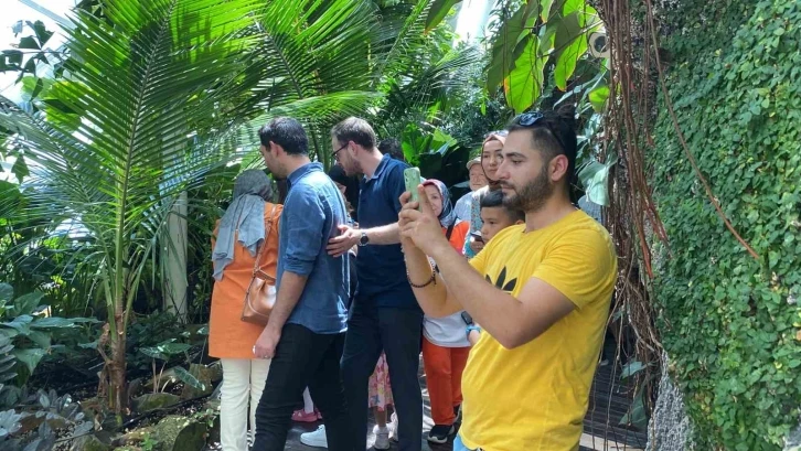 Sabah erken saatlerde Konya Tropikal Kelebek Bahçesine gelen vatandaşlar uzun kuyruklar oluşturdu. Kelebekler Bahçesini gezen vatandaşlar hem kelebekleri yakından gördü hem de fotoğraf çekti.