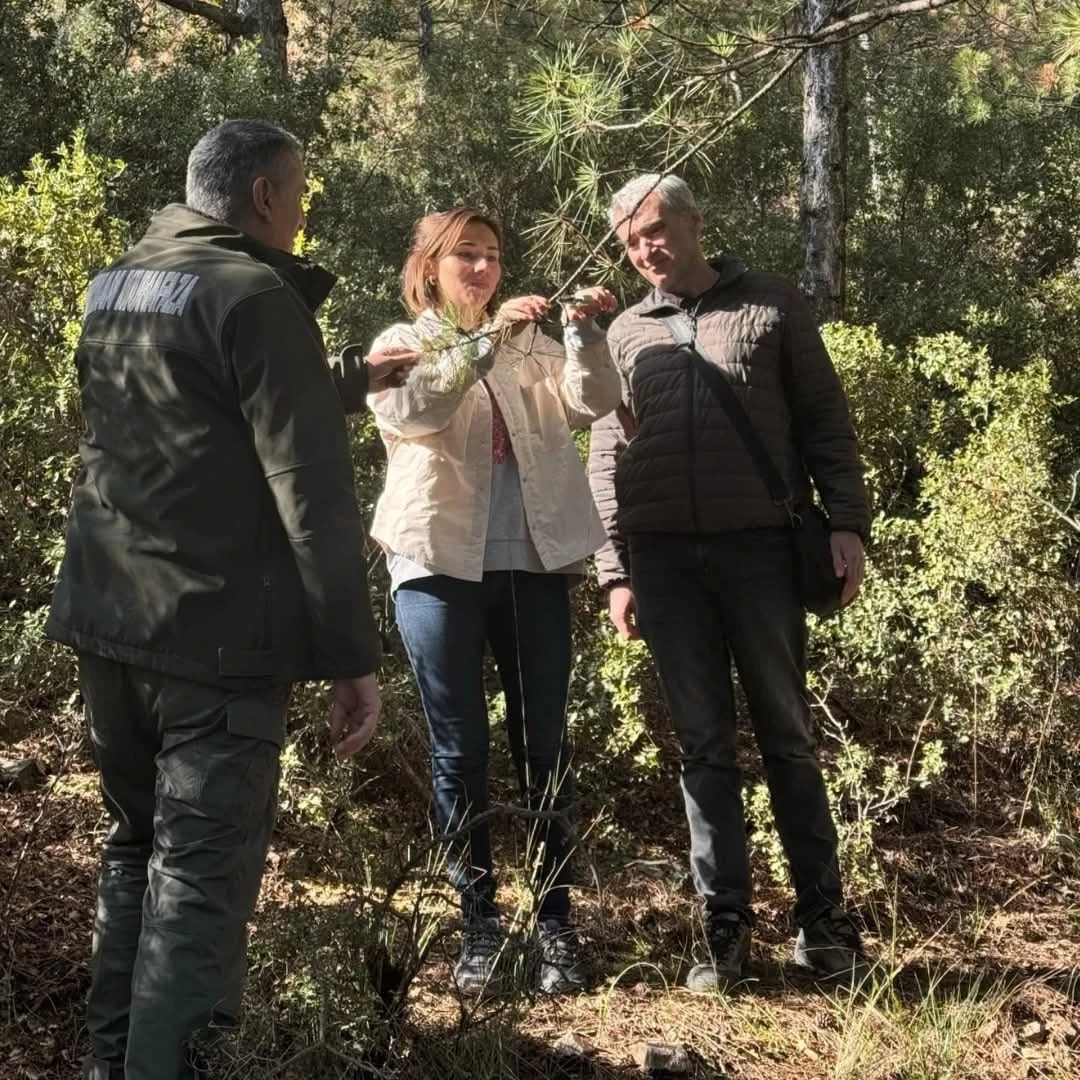 Denizli’de karaçam ağaçlarında görülen kuruma ve solgunluk belirtileri üzerine uzman ekipler harekete geçti. Kuraklık ve hastalık şüphesiyle alınan örnekler laboratuvarda incelenecek. Denizli’de Göveçlik mevkiinde bulunan karaçam ağaçlarında görülen kuruma ve solgunluk belirtileri üzerine, uzman ekipler sahada incelemelerde bulundu. Denizli Orman Bölge Müdürlüğü Orman Zararlılarıyla Mücadele Şube Müdürü İbrahim Karaşahin, Denizli Orman İşletme Müdürü Tamer Uysal, Merkezefendi Orman İşletme Şefi Kemal Fıtlamak ile Pamukkale Üniversitesi Fen Fakültesi Biyoloji Bölümü Doktor Öğretim Üyesi Ceyda Beram ve doktora öğrencisinin yer aldığı ekip, zarar gören ağaçları yerinde inceledi. İlk elde edilen sonuçlar, ağaçlardaki kurumaların temel sebebinin iklim değişikliği ve özellikle kuraklık olduğunu gösteriyor. Kuruyan ve zayıf düşen ağaçların hastalıklara karşı daha savunmasız hale geldiği belirtilirken, muhtemel patojenik mikroorganizmaların etkisi de göz önünde bulundurularak teknik analizler için örnekler alındı. Yapılacak laboratuvar incelemeleri sonucunda, ağaçlarda hastalığa sebep olan mikroorganizmaların varlığı tespit edilirse, teşhis doğrultusunda alınacak tedbirler belirlenecek. Uzman ekipler, orman ekosisteminin korunması için gerekli önlemleri değerlendirerek mücadele sürecini yönetecek.