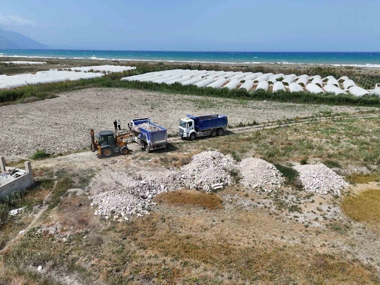 Hatay Büyükşehir Belediyesi’nin Milleyha Kuş Cenneti’nde başlattığı çalışma ile bölgeye kaçak olarak dökülen moloz ve çöpler temizlendi.
