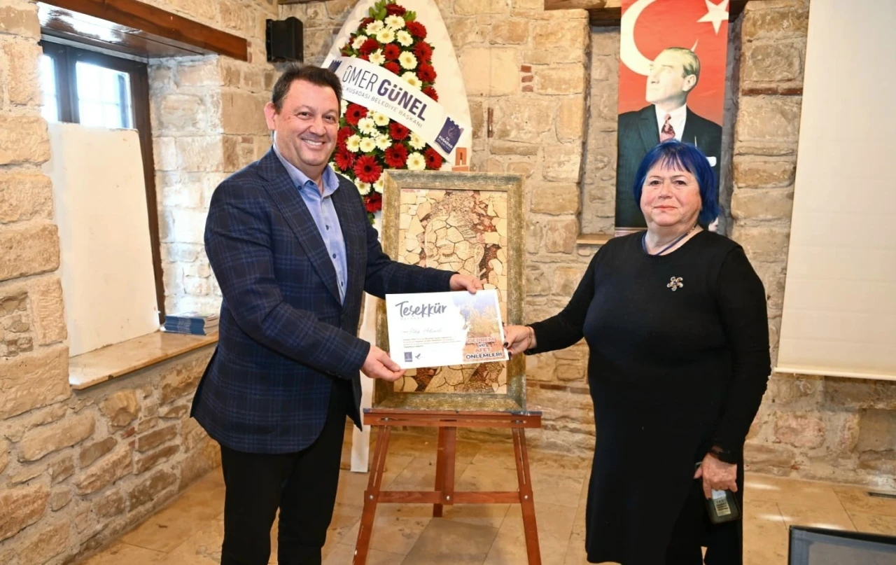 Kuşadası Belediyesi İbramaki Sanat Galerisi, Kahramanmaraş merkezli 6 Şubat depremlerinin 2’inci yılında ‘Deprem ve Afet Önlemleri’ isimli söyleşiye ev sahipliği yaptı. Etkinliğe katılan Kuşadası Belediyesi Afet İşleri Müdürü ve Jeoloji Mühendisi Edip Adanalı, "Kuşadası’nda muhtemel bir deprem ve diğer doğal afetlere karşı her türlü önlemi alıyoruz" dedi. Etkinlik, Kahramanmaraş merkezli 6 Şubat depremlerinde hayatını kaybedenlerin anılmasıyla başladı. Söyleşi öncesinde depreme Antakya’daki evinde yakalandıktan sonra enkaz altından kurtarılan, Türkiye’nin ilk 3 boyutlu mozaik sanatçısı Menel Hüzmeli’nin yaşadıklarını anlatan bir belgesel gösterimi yapıldı. Belgesel, salondakilerin duygu dolu anlar yaşanmasına neden oldu. Aynı zamanda ‘Cennetin Hediyesi’ isimli 500 bin taştan oluşan 1 ton ağırlığındaki eserin de sahibi olan Menel Hüzmeli, belgesel gösteriminden sonra yaptığı konuşmada, "Ben o süreci çok zor atlattım. Bütün mahallem, çevrem yok olmuştu. Ailemle enkaz altında kaldığımda, zamanın ve mekanın yok olduğunu tecrübe ettim. Soğuk, yağan yağmur, çaresizlik ve gelen çığlıklar korkunç bir deneyimdi. Depremde eserim de zarar gördü" dedi. Mozaik sanatçısı Menel Hüzmeli’nin ardından söz alan Kuşadası Belediyesi Afet İşleri Müdürü ve Jeoloji Mühendisi Edip Adanalı ise son günlerde Ege Denizi’ndeki sismik hareketlilik sonucunda, Santorini Adası’nın bulunduğu bölgede meydana gelen depremlerle ilgili değerlendirmelerde bulundu. Depremlerin ‘Güney Ege Magmatik Kuşağı’ adı verilen yerde yaşandığını belirten Edip Adanalı, "Öncelikle depremler tektonik değil, magmatik kaynaklı. Çünkü yerin yaklaşık 5 kilometre altında gerçekleşiyor" dedi. Kuşadası Belediyesi’nin kentte yaşanacak bir deprem veya diğer doğal afetlere karşı gerekli olan her türlü önlemi almaya devam ettiğini ifade eden Edip Adanalı, "Öncelikle 2020 yılındaki İzmir depreminden sonra hemen Kentsel Dönüşüm Müdürlüğü’nü kurduk. Daha sonra Kuşadası’ndaki tüm binaların kolon-kiriş ölçümlerini yaparak hasarlı olanları tespit ettik. Başkanımız Ömer Günel bu konuda çok hassas ve titiz davranıyor. Ayrıca bölgemizde Afet İşleri Müdürlüğü’nü kuran ilk belediye olduk. Toplanma alanlarının sayısını 77’e yükselttik. Deprem Acil Eylem Planımız hazır. Dört tane de barınma alanımız bulunuyor" diye konuştu.