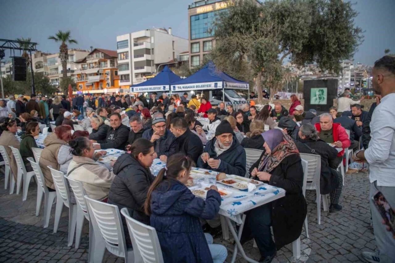 Kuşadası Belediyesi tarafından Kadir Gecesi’nde, 2 bin kişilik iftar sofrası kuruldu. Belediye Başkanı Ömer Günel’in de katıldığı iftar yemeğinde, oruçlarını dualar eşliğinde açan Kuşadalılar, Ramazan ayının manevi güzelliğini ve bereketini paylaştı. Kuşadası Belediyesi, Kadir Gecesi’ne özel iftar programı düzenledi. İsmail Cem Dostluk ve Barış Meydanı’nda verilen iftar yemeğine Başkan Ömer Günel, belediye başkan yardımcıları, belediye meclis üyeleri, CHP Kuşadası İlçe Örgütü Başkanı Mehmet Gürbilek ve çok sayıda Kuşadalı katıldı. Birlik ve beraberlik ruhunun can bulduğu iftar sofrasında, Başkan Ömer Günel oruçlarını açmayı bekleyen hemşehrilerine yemek ikramında bulundu. Daha sonra Kuşadalılarla tek tek ilgilenen Başkan Ömer Günel, Ramazan ayını huzur ve sağlık içerisinde geçirmelerini diledi. İftar yemeği boyunca Tasavvuf müziği konseri ve Semazen gösterisi sergilendi. Ramazan ayında hoşgörü, yardımlaşma, dayanışma ve paylaşma duygularının pekiştiğini belirten Başkan Ömer Günel, "Bin aydan daha hayırlı olan bu çok özel gecede siz kıymetli hemşehrilerimle aynı sofrayı paylaşmaktan mutluluk duyuyorum. Tüm Kuşadalıların Kadir Gecesi mübarek olsun" diye konuştu.