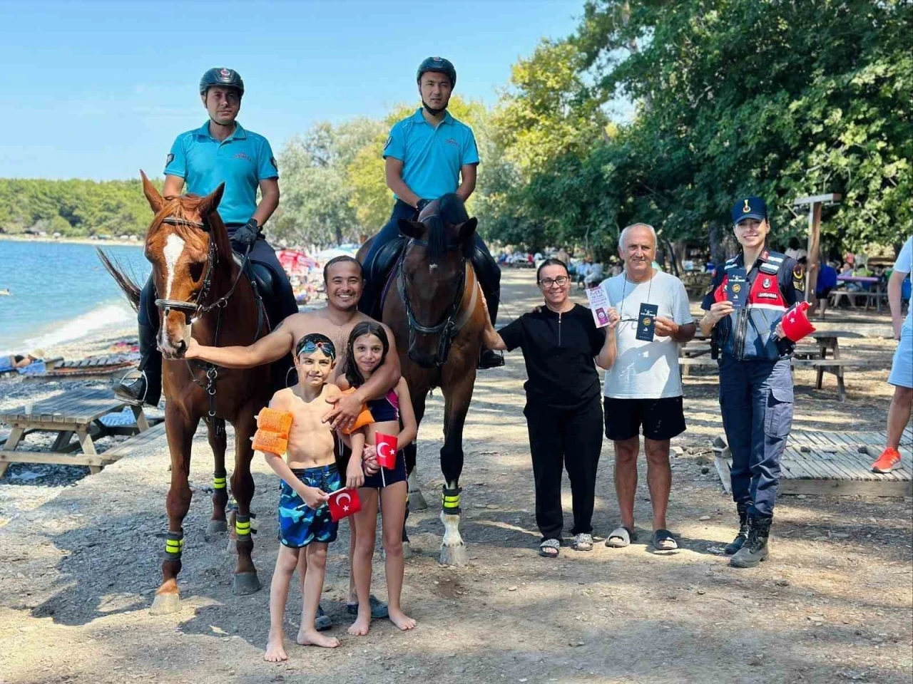 Aydın İl Jandarma Komutanlığı Aile İçi Şiddetle Mücadele ve Çocuk Kısım Amirliği, Atlı Jandarma Timi ve Kuşadası Kavaklı Jandarma Karakol Komutanlığı personelleri tarafından vatandaşların huzur ve güvenliğini sağlamak amacıyla bilgilendirme faaliyeti gerçekleştirildi. Etkinlikte, Kadın Destek Uygulaması (KADES) ile 6284 Sayılı Kanun hakkında vatandaşlara bilgi verilirken, jandarmanın görev ve sorumlulukları da tanıtıldı. Farkındalık oluşturmak amacıyla vatandaşlara broşür dağıtılırken, çocuklara Türk bayrağı ve jandarma boyama kitabı hediye edildi. Jandarma Teşkilatı’nın her zaman vatandaşların yanında olduğu vurgulandı.