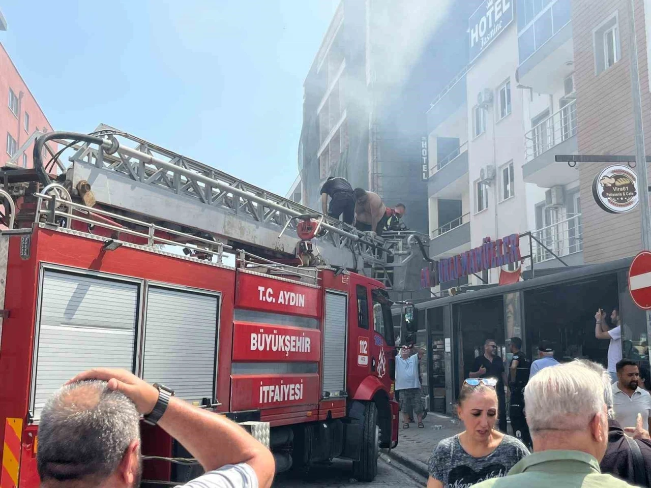 Aydın’ın Kuşadası ilçesi Cumhuriyet Mahallesi’nde öğle saatlerinde çıkan yangın paniğe neden oldu. Apartmanın en üst katında mahsur kalan vatandaş, itfaiye ekiplerince kurtarıldı.