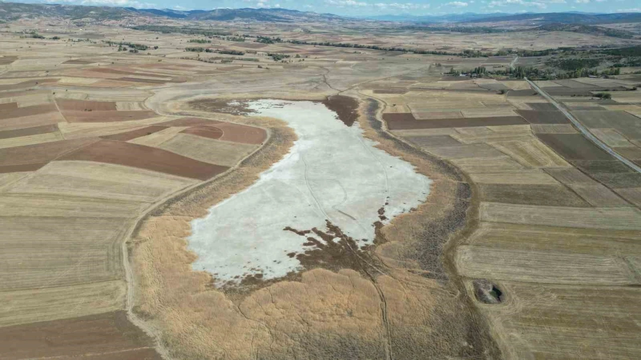 Sulusaray ilçe merkezine yaklaşık 15 kilometre uzaklıktaki Uylubağı köyü eteklerinde bulunan gölet, bu yıl yaşanan kuraklık nedeniyle tamamen kurudu. Bir zamanlar onlarca farklı kuş türüne ev sahipliği yapan göletin yerinde beyaz bir tabaka ve derin çatlaklarla kaplı kuru bir zemin kaldı. Kuşların göç rotası sessizliğe büründü