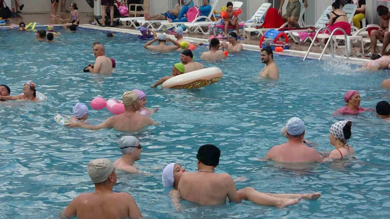 Vatandaşlar, termal havuzlarda gün boyu hem eğleniyor hem de serinlemenin keyfini çıkarıyor.