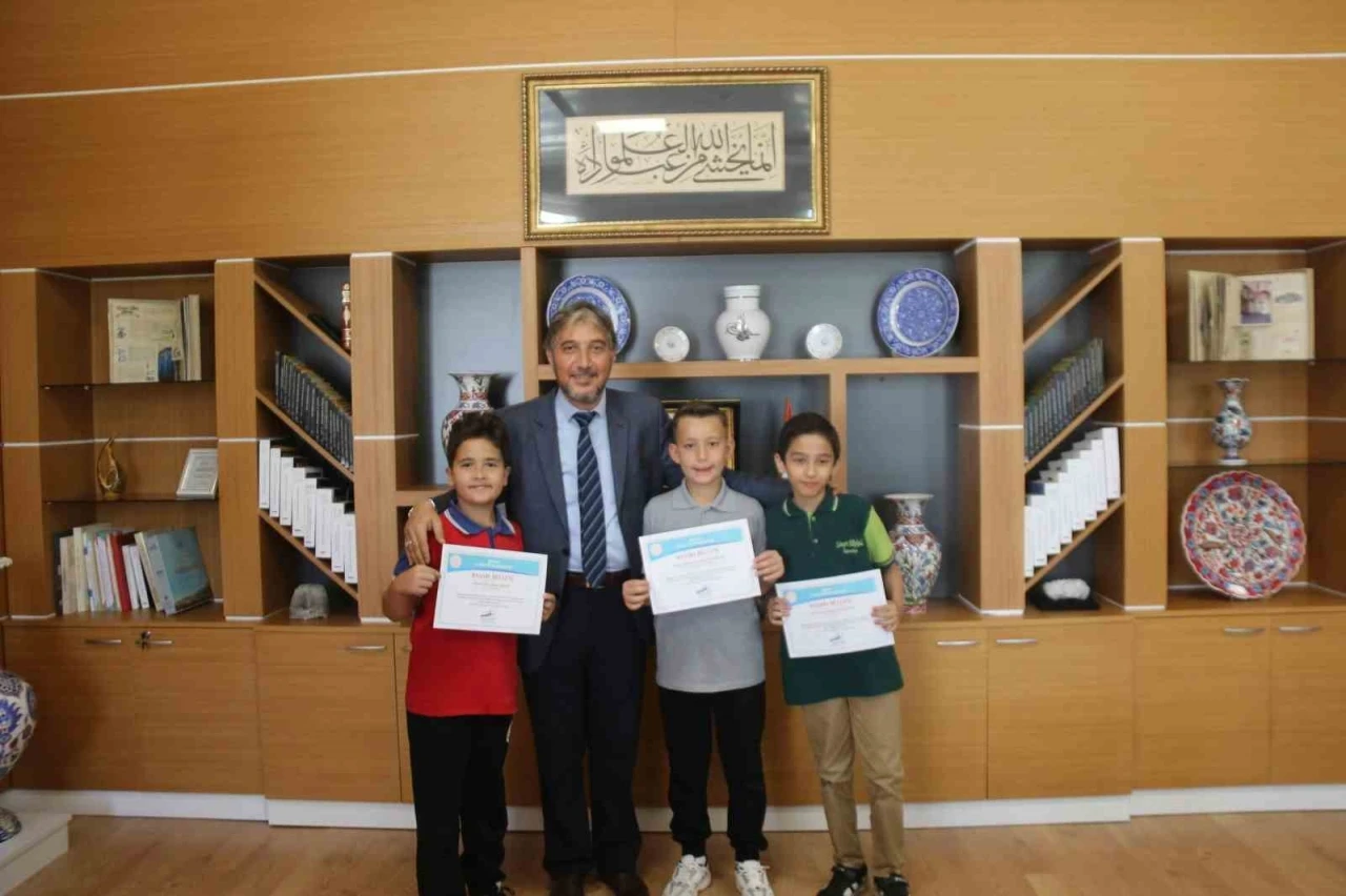 Yarışmalarda dereceye giren öğrencilere belge ve ödülleri, İl Milli Eğitim Müdürü Mustafa Yılmaz tarafından takdim edildi. Müdürlük makamında gerçekleştirilen törende, Temel Eğitim Şube Müdürü Mustafa Topuz, Ortaöğretim Hizmetleri Şube Müdürü İrfan Kanık, okul yöneticileri, öğrenciler ve veliler de hazır bulundu.