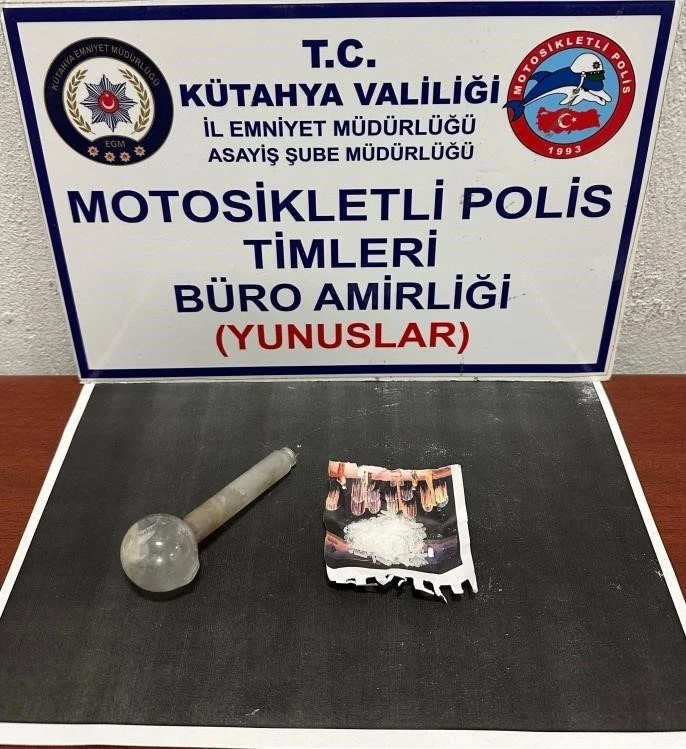 Kütahya’da Motosikletli Polis Timlerince bir kişinin yapılan üst aramasında, 2,20 gram metamfetamin ele geçirildi.