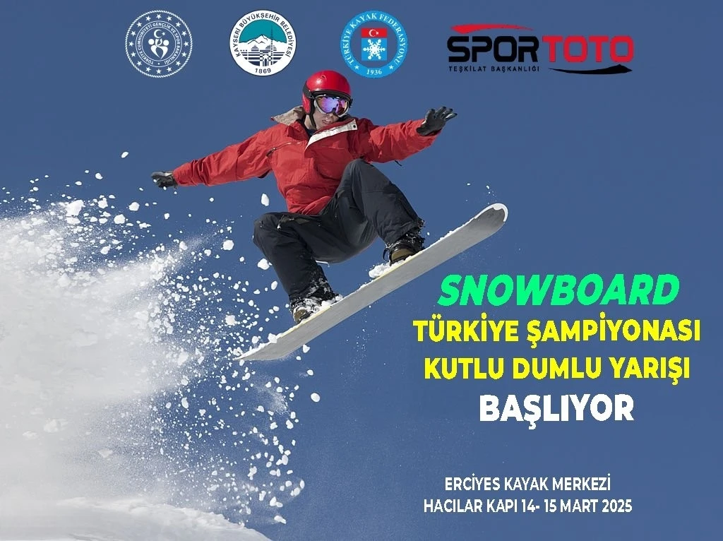 Türkiye Kayak Federasyonu’nun 2025 faaliyet programında yer alan Kutlu Dumlu Snowboard Türkiye Şampiyonası, bugün Erciyes Kayak Merkezi Hacılar Kapıda başlayacak. Şampiyona iki gün sürecek ve yarın final yarışları ile tamamlanacak.