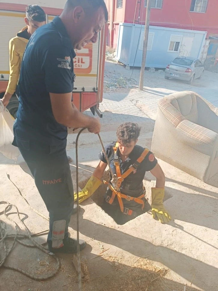 Hatay’da kuyuya düşen köpek itfaiye ekipleri tarafından kurtarıldı.