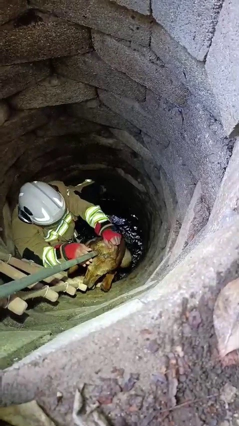 Hatay’da su kuyusuna düşerek mahsur kalan köpek, itfaiye ekipleri tarafından kurtarıldı.