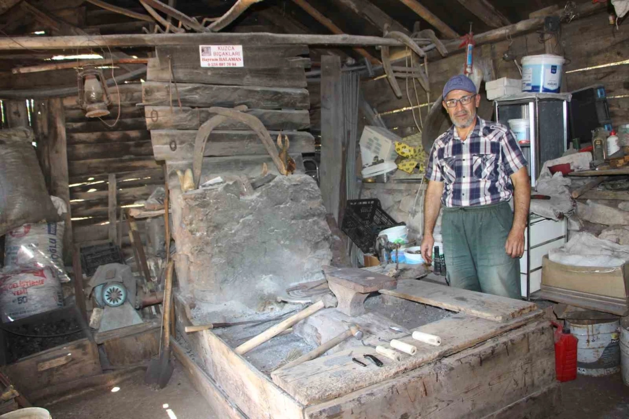 Kuzca bıçağı ustası Bayram Balaman, mesleğin babasından kendisine geçtiğini belirterek, "Babamdan kaldı, 11 yaşımda öğrendim. Bir bıçak yaklaşık 4 saat sürüyor. Özellikle yerli esmer çelik kullanıyoruz, dövme çelik. Saplarını kasaplardan temin ettiğimiz koç ve teke boynuzlarından yapıyoruz. İyi bakıldığı zaman 40-45 yıl ömrü var. Orijinal şekliyle yapan bir tek ben varım. Hazır malzeme kullanarak yapanlar var ama ben direniyorum. Mesleğin özünü, töresini koruyorum. Tamamen el işçiliği, ateşten çıkan dövme bıçak. Günlük 3 büyük, 6 küçük üretebiliyorum. Orijinalde ısrar ediyorum çünkü meslek ölürse en çok ben üzülürüm. Gönüllüsü olsa hemen öğretirim. Aslında kazandırıyor ama gençler bu sabra katlanmak istemiyor" dedi. Soyadı kanununa yansıyan bir gelenek