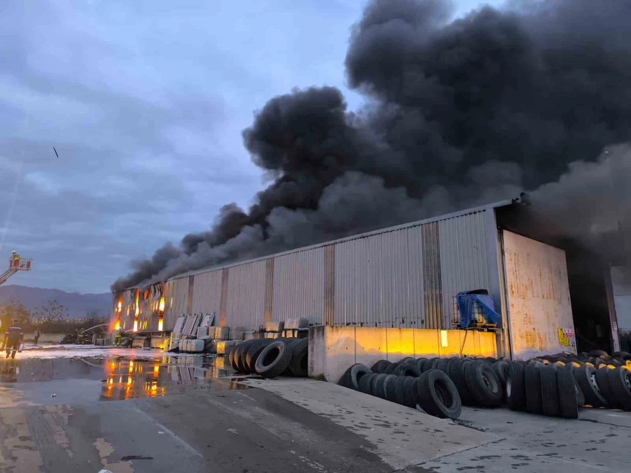 Yangın, Dörtyol ilçesi Yeşilköy Mahallesi’nde bulunan ULTRANS lojistiğe ait lastik deposunda çıktı. İhbar üzerine bölgeye itfaiye ekibi sevk edildi. Çevre ilçelerden de itfaiye ekiplerinin yönlendirildiği yangında alevlerle mücadele sürüyor.