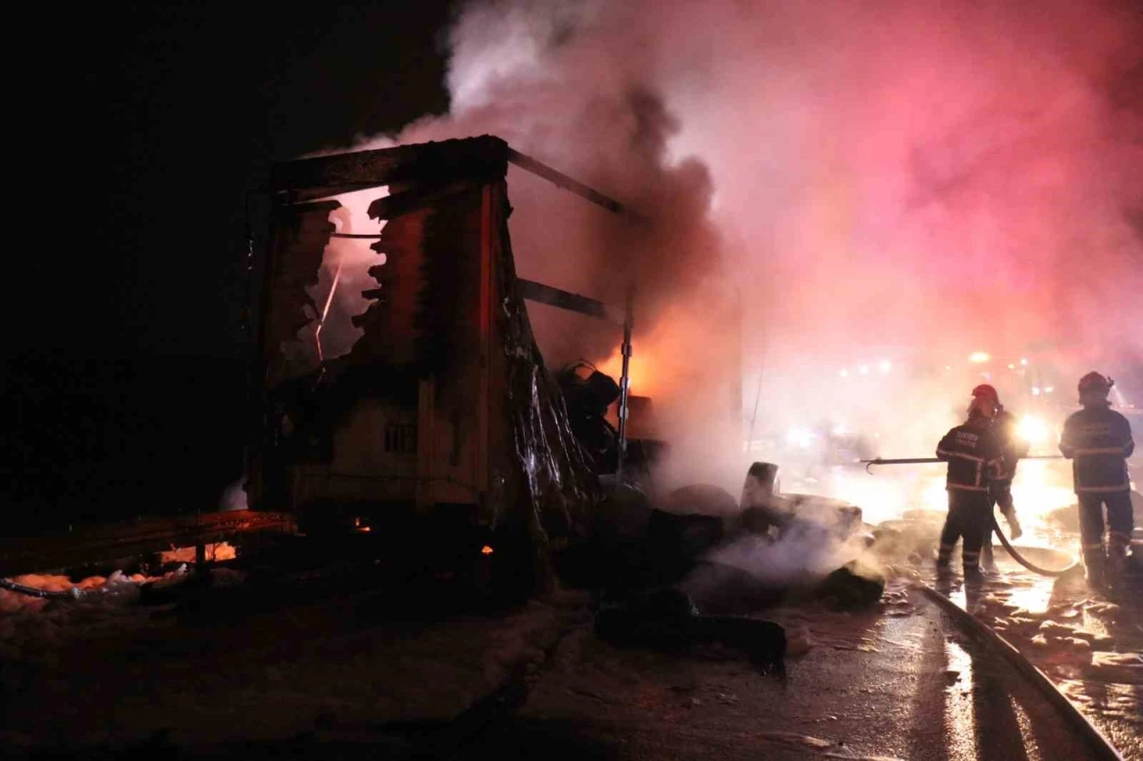 Kuzey Marmara Otoyolu Sakarya-Kocaeli il sınırında lastik yüklü yarım römork alev alev yandı. Yangın, itfaiye ekiplerinin müdahalesiyle söndürüldü.