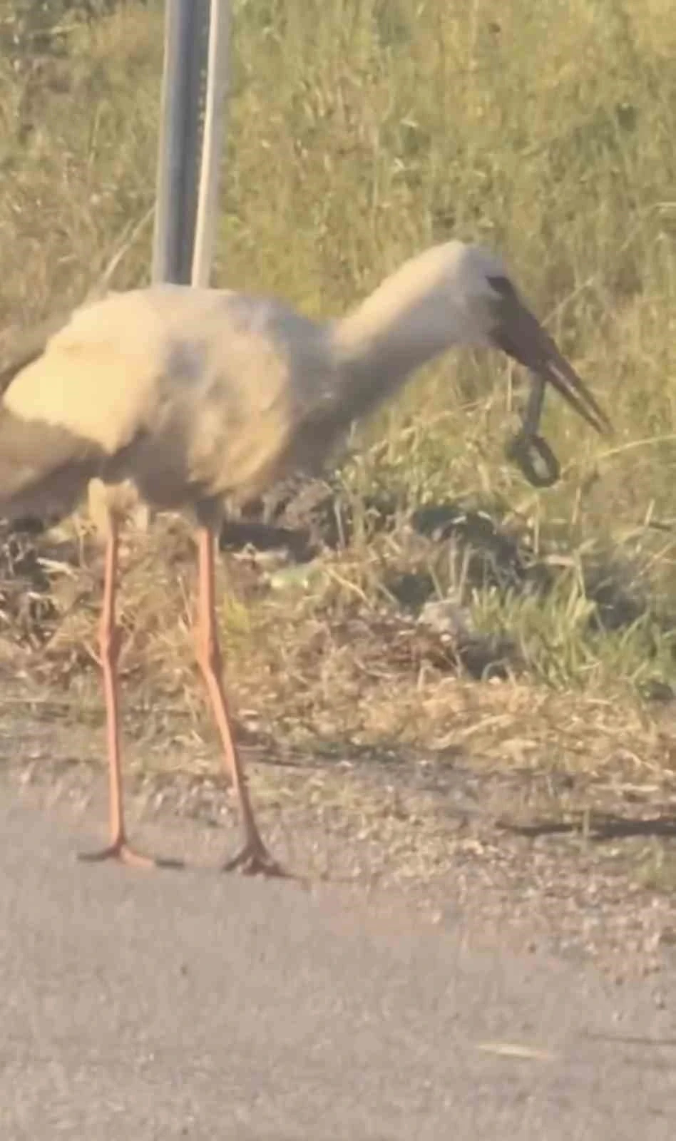 Bursa’da hava sıcaklığı sebebiyle ortaya çıkan yılanlar, vatandaşları tedirgin etti. Kimi itfaiye ekiplerini çağırıp yakalanmasını beklerken, kimi ise arabasından bile inmeden yoluna devam etti. Leylek köyü Karaağaç’ta bir leylek gördüğü yılanı tek hamle ile midesine indirdi. O anlar bir vatandaş tarafından saniye saniye kayda alındı.