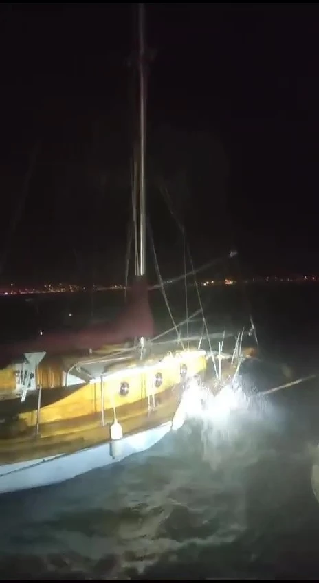 Akşam saatlerinde şiddetini artıran lodos fırtınası Kuzey Ege’de özellikle denizcileri zorluyor. Ayvalık’ta Cunda (Alibey) Adası’nda karaya bağlı olan özel tekneler ve gezi tekneleri oluşan dalgalar nedeniyle zor anlar yaşıyor. Teknelerin dalgalar ile tehlikeli şekilde savrulduğu görüldü.