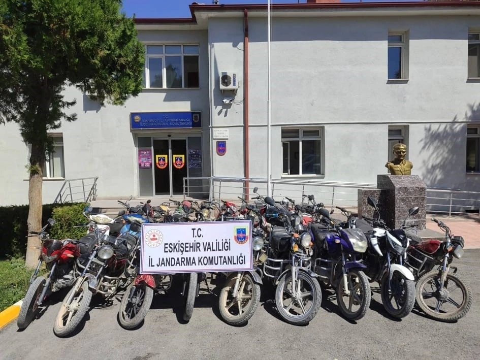 Eskişehir İl Jandarma Komutanlığı ekiplerinin çalışmaları sonucu 2’si motor/şase numarası kazınmış ve silinmiş, 25’i ise plakasız, ruhsatsız, belgesiz olduğu tespit edilen 27 motosiklet ele geçirildi.