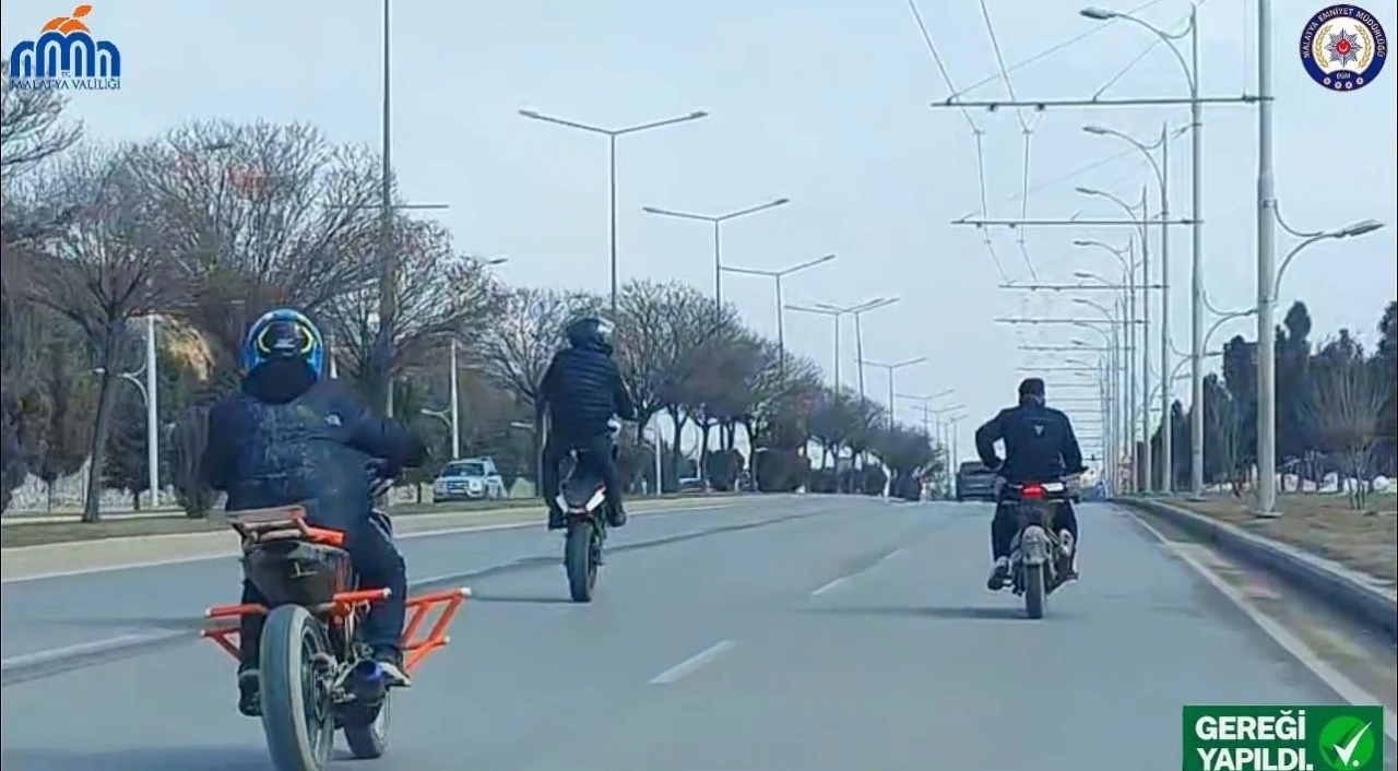 Malatya’da trafik güvenliğini tehlikeye atan motosiklet sürücüleri polis ekiplerinin takibi sonucu yakalanırken, yaklaşık 90 bin TL idari para cezası uygulandı.